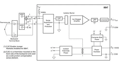 Нормализатор сигнала термопары с линеаризацией типа J , вход 0...+500 °C, выход 0...+5 В