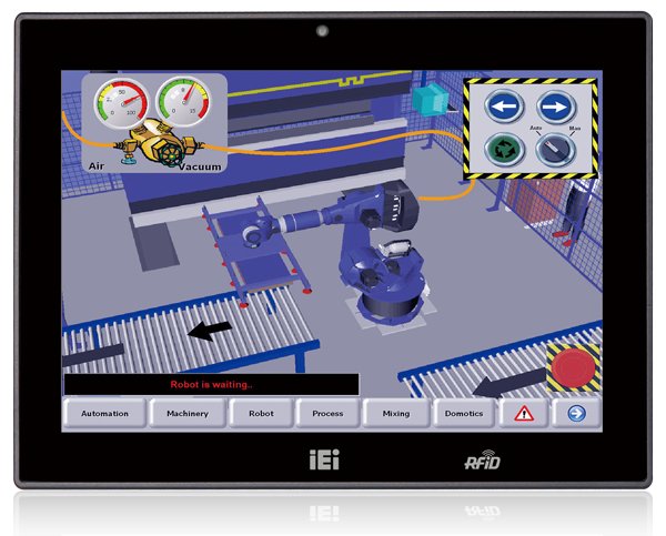 Панельная рабочая станция с 12.1" TFT LCD, 1024x768, резистивный сенсорный экран, Intel Celeron J1900 2.0ГГц, 4Гб DDR3L, отсек 2.5" SATA HDD, 2xCOM, 4xUSB, 2xGbE LAN, mSATA, камера 2МП, Wi-Fi, Аудио, питание 9-30В DC