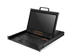 1U консоль для 19" стойки 17" TFT LCD монитор, клавиатура, комплект 8 х 1.8м кабель Combo VGA/KB/Mouse, 8 портов Combo KVM, Touchpad, одиночные направляющие, стальной корпус