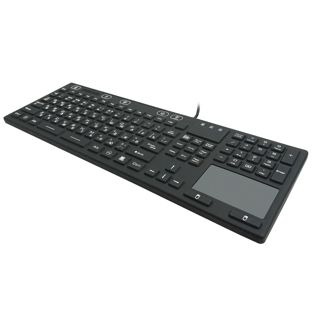 Защищенная IP68 настольная силиконовая клавиатура, 118 клавиш, USB интерфейс, тачпад, черный цвет, подсветка
