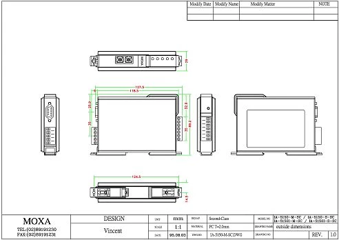 Ethernet сервер последовательных интерфейсов, 1xRS-232/422/485, 100 BaseFX Ethernet (одномодовое оптоволокно, разъем SC), с изоляцией 2 кВ, -40...+75С