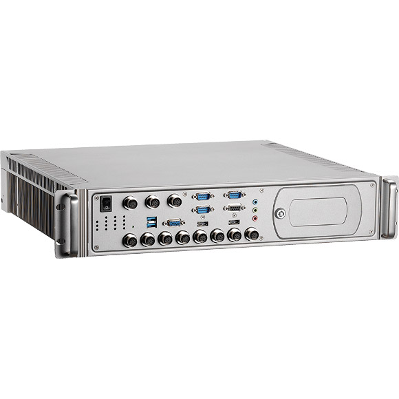 Промышленный безвентиляторный компьютер для ж/д, Intel Core i7-3517UE, 2U, DDR3, VGA, 2xHDMI, Audio, 4x2.5" SATA SSD отсека, 3xCOM с изоляцией, GPIO, 4xUSB, 2xGbE LAN, 8xPoE, 3xMiniPCIe, PCIe x8, питание 110В DC