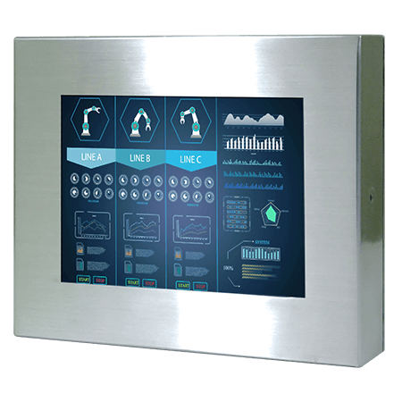 Промышленный 8,4" LCD монитор, разрешение 800x600, яркость 600кд/м2, корпус из нержавеющей стали, защита IP65, VGA, питание 12В DC