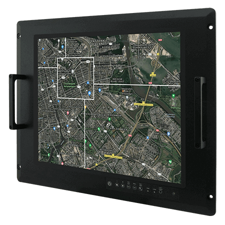 Промышленный 15" TFT LCD монитор, разрешение 1024x768, яркость 500 кд/м2, емкостный сенсорный экран, VGA+5xBNC+DVI-D, питание 12В DC