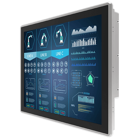 17" промышленный монитор для монтажа в панель, IP65 по передней панели, разрешение 1024x768, яркость 350 кд/м2, VGA, HDMI, проекционно-емкостный сенсорный экран (USB), питание 12В DC, внешний адаптер питания 100-240В AC