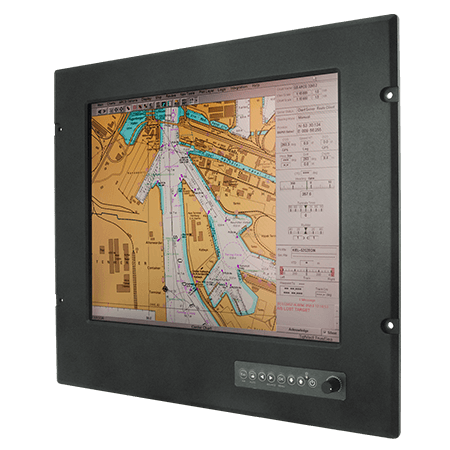 17" TFT LCD монитор для морского применения, разрешение 1280x1024, яркость 350 кд/м2, VGA, DVI-D, S-Video, Composite, передняя панель IP66, корпус IP54, питание 9-36В DC, -15..55C