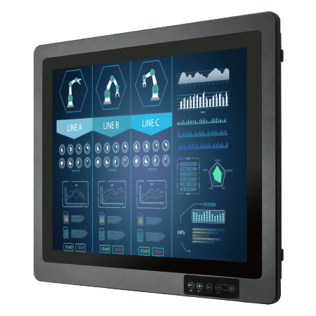 Промышленный 19" монитор с IP67 по всему корпусу, 1280x1024, передняя панель из алюминия, 1000 нит, 3xM12 (USB, VGA, DC), адаптер питания AC DC 12В 50Вт