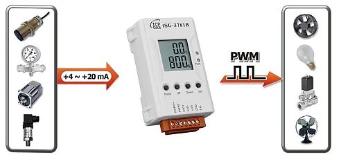 Преобразователь сигналов тока 4...20 мА в сигнал ШИМ, 1 канала, вертикальный дисплей