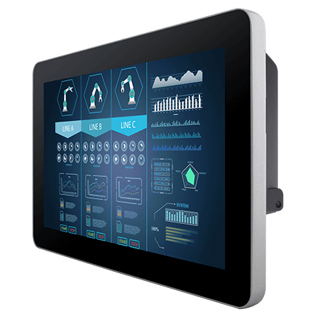 Промышленный 10.1" LCD мониторr, разрешение 1280x800, яркость 350 кд/м2, VGA, HDMI, емкостный сенсорный экран, передняя панель IP65, питание 12В DC