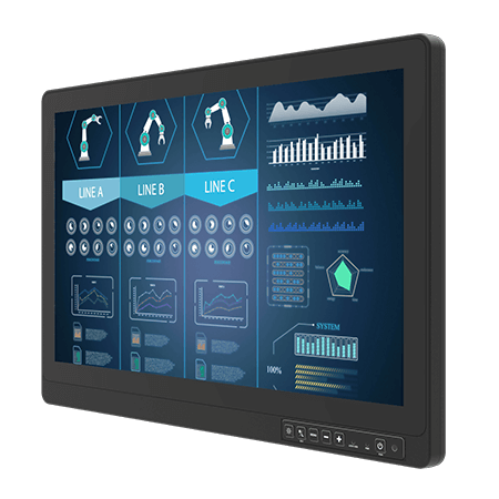 Промышленный 21.5" LCD монитор, разрешение 1920x1080, яркость 1000 кд/м2, емкостный сенсорный экран, полная защита IP67, VGA, HDMI, питание 9-36В DC-in, -10...55