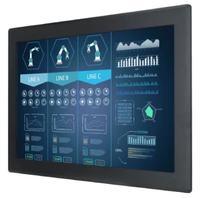 Промышленный 24" LCD монитор, разрешение 1920x1080, яркость 250 нит, резистивный сенсорный экран, VGA, HDMI, питание 12В DC